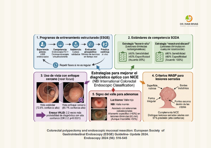 Para superar estas limitaciones, las guías de la US Multi-Society Task Force recomiendan complementar la clasificación NICE con la evaluación morfológica (clasificación de París), el patrón de criptas de Kudo, y la clasificación JNET cuando se dispone de magnificación. Los criterios WASP también pueden ayudar a identificar lesiones serradas sésiles.