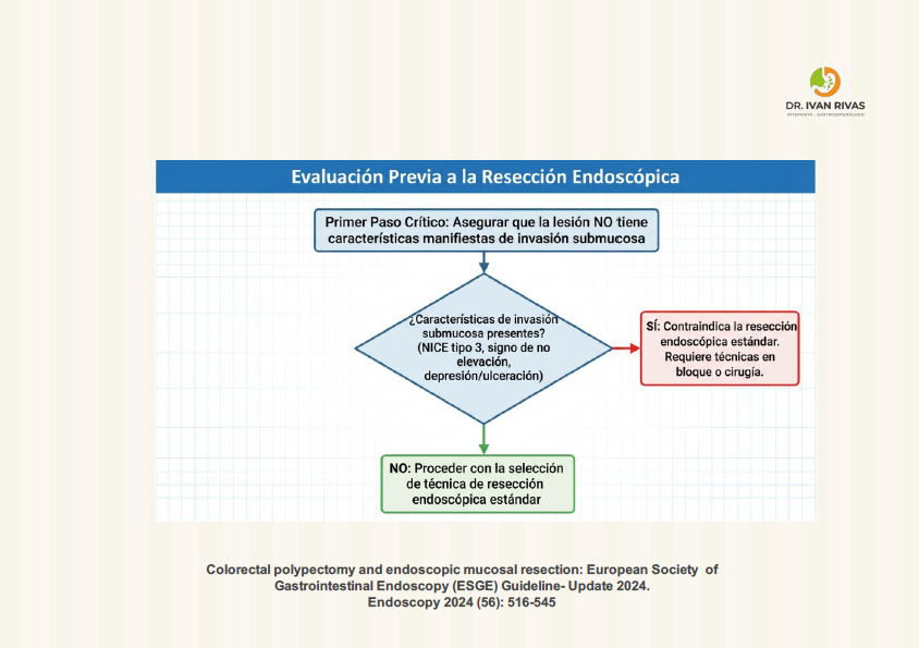 - Los factores endoscópicos predictivos de invasión submucosa incluyen: patrón de criptas invasivo (Kudo tipo V), presencia de macronódulos, y componente deprimido